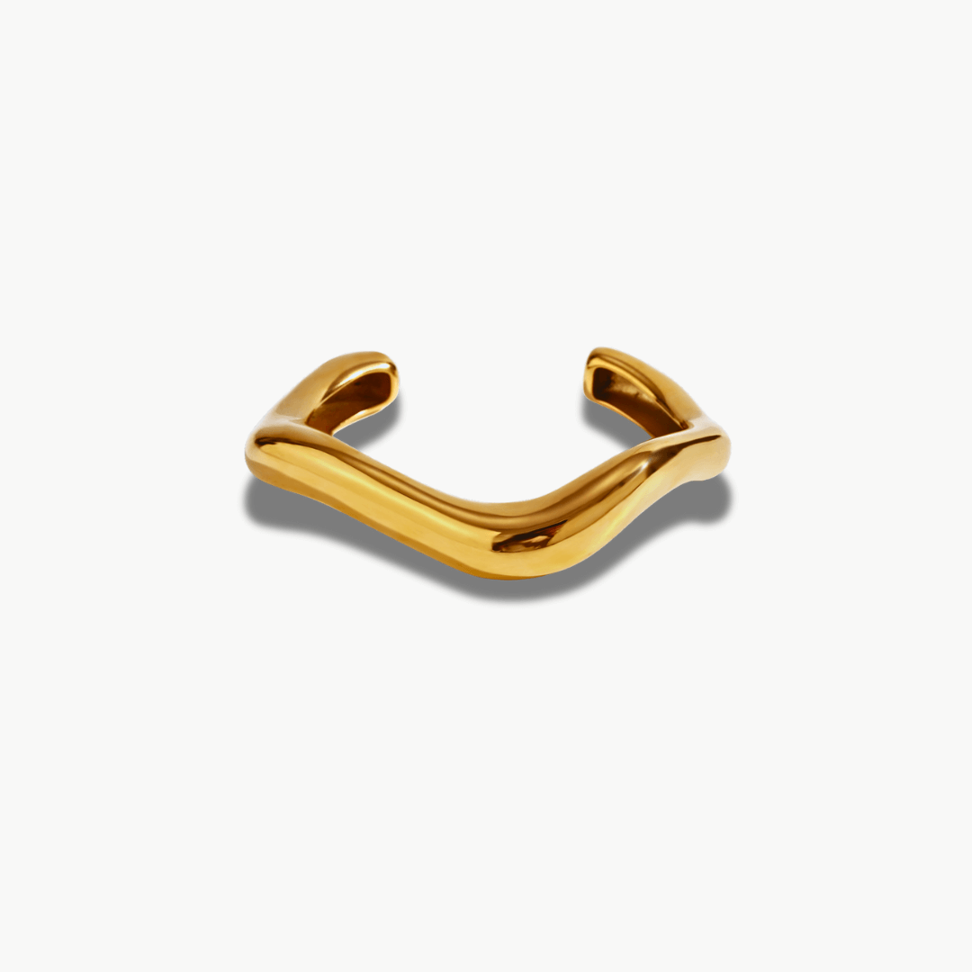 A bold yet fluid shape that hugs the wrist with old money elegance. This piece embraces curves and angles in perfect harmony, adding a subtle architectural edge to your style.