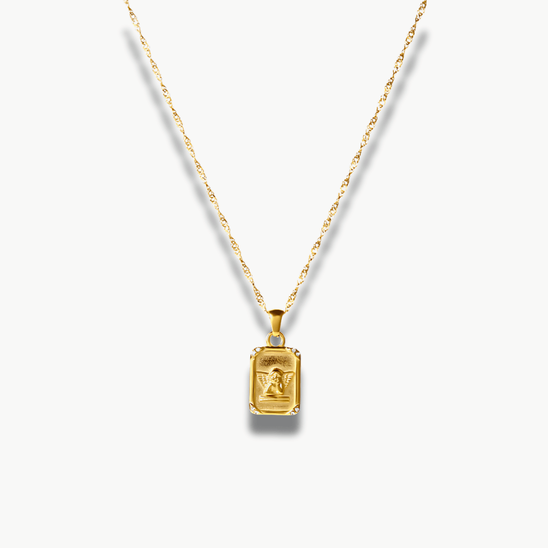 Rooted in tradition and reverence, this piece carries a quiet sense of protection. Its engraved medallion and vintage texture speak to something sacred