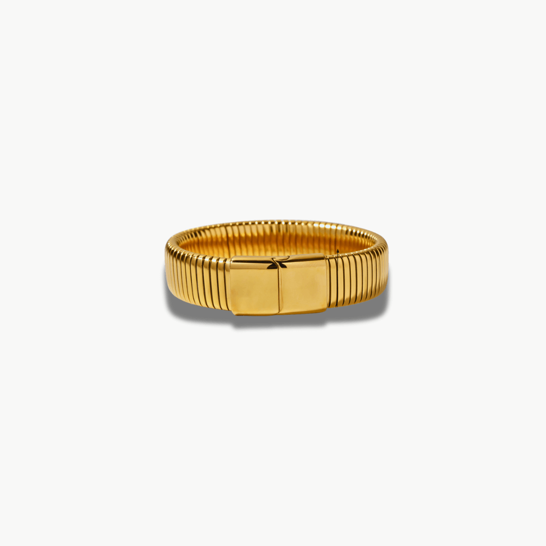 Defined by rhythm and symmetry, this piece brings structure to the wrist with its bold linear grooves. Sleek and vintage, it speaks of precision, balance, and quiet strength.