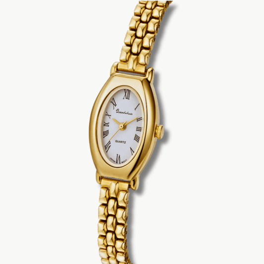 The Cerier Watch channels timeless sophistication through its square case and classic Roman numeral dial. Its polished bracelet and deep blue hands evoke a sense of refined European elegance. Designed for the woman who values heritage and poise, it’s a true emblem of old money grace and enduring style.
