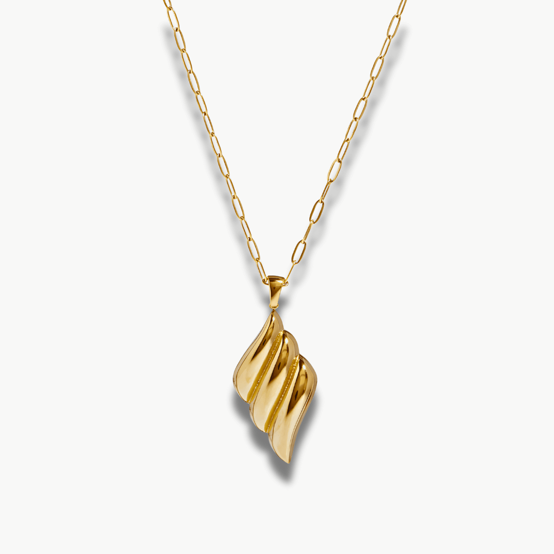 Fluid and sculptural, this pendant evokes the quiet motion of silk or sea. Its soft curves and golden weight feel instinctive, perfect to your vintage collection.