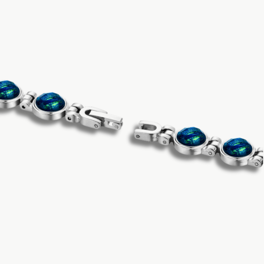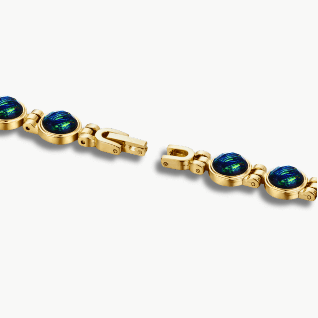 The Davine Watch radiates refined sophistication with striking gemstone bracelet in deep ocean hues. Its round dial, encircled by intricate detailing, adds a touch of classic allure. Designed for the woman who loves elegance with a hint of boldness, it embodies timeless beauty and distinguished charm.