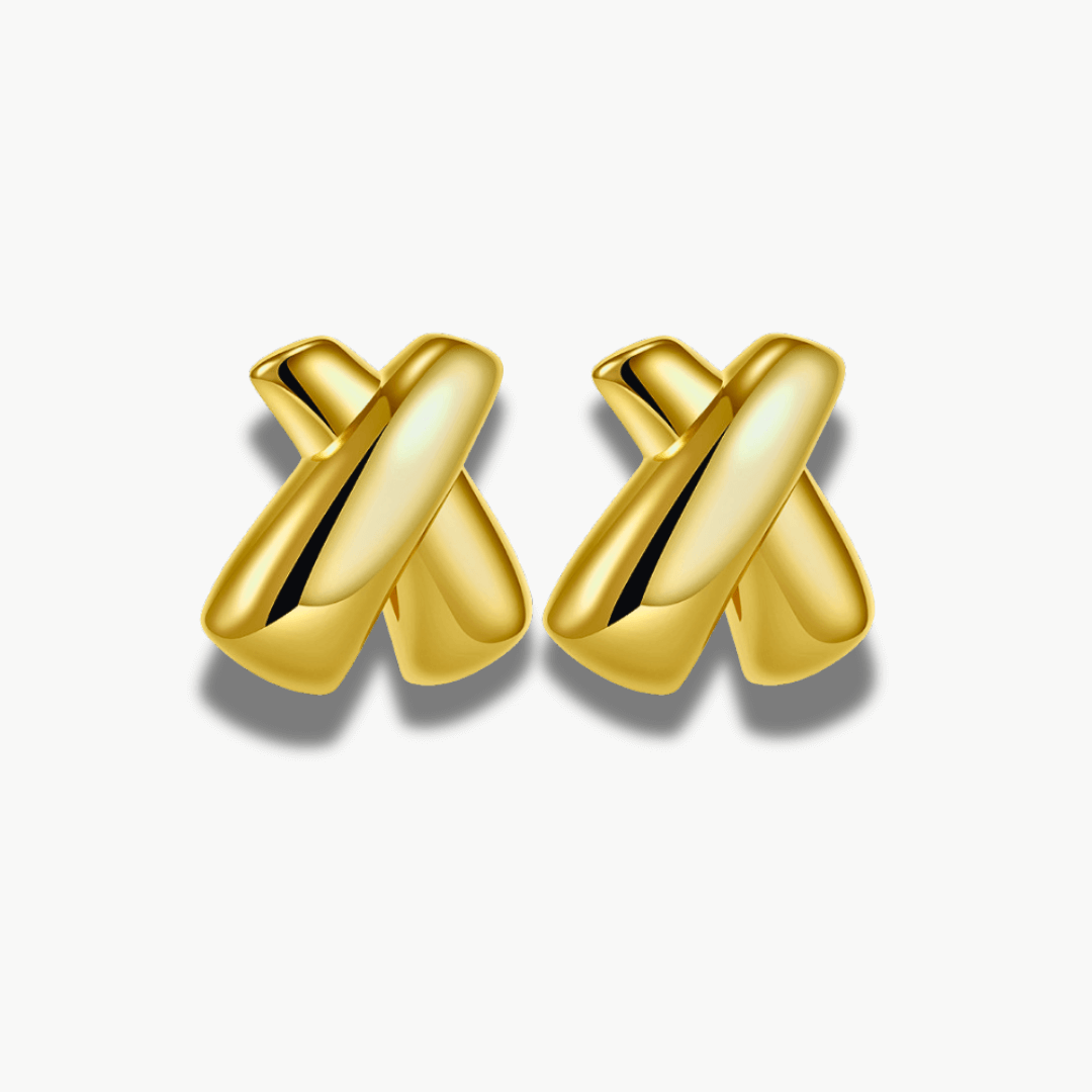 The Xena earrings feature a bold vintage design in high-polish gold, creating an elegant "X" silhouette. Their sculptural, overlapping shape blends softness and strength, making them a statement piece that’s both modern and timeless.